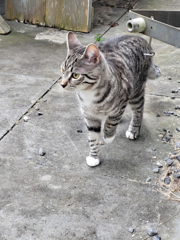 We have a cat, Puk, she is about 1.5 year old, looks after herself, but loves to be cuddled and to be fed.