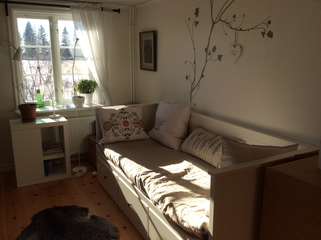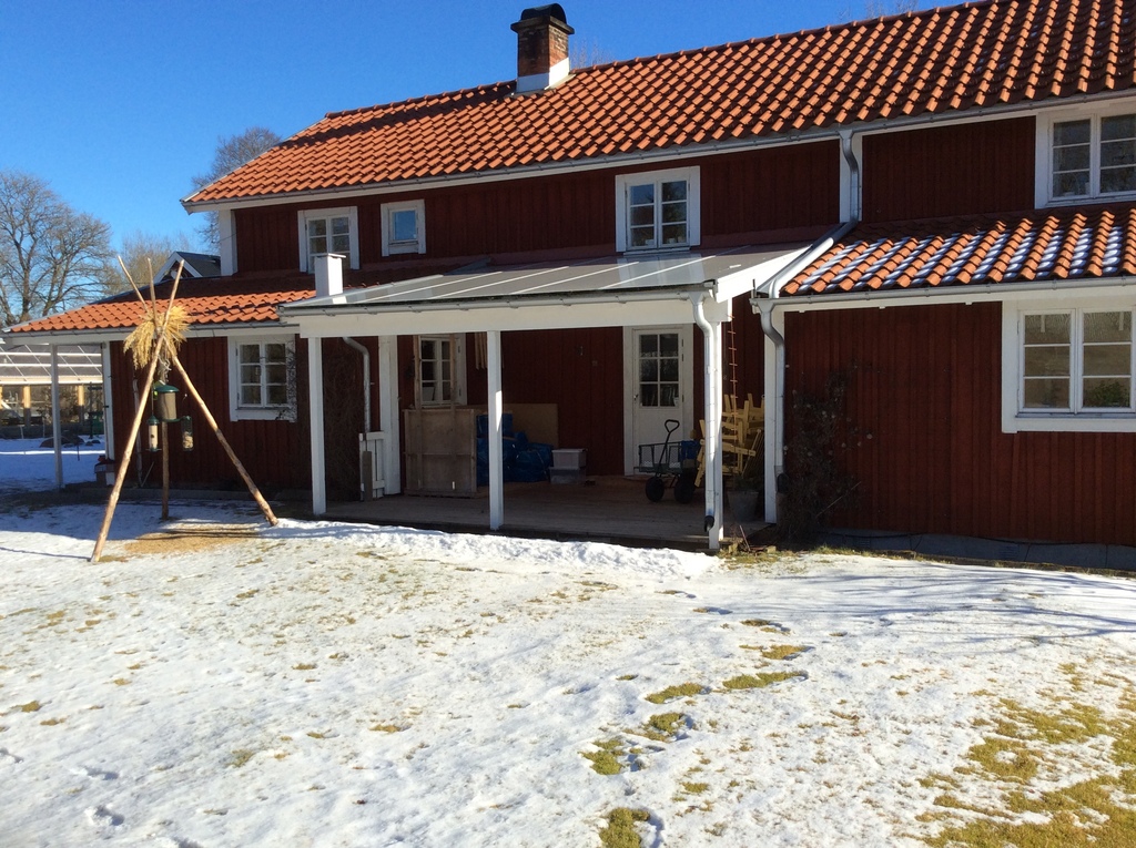 We live in the countryside in the south of Sweden 20 km north of Alvesta and 35 km northwest of Växjö. Our house was probably built in the 18th century, 180 square meters and nine rooms. There are five bedrooms and two livingrooms. We have a big garden with currant bushes and rasperry bushes, a nice greenhouse and a big lawn.