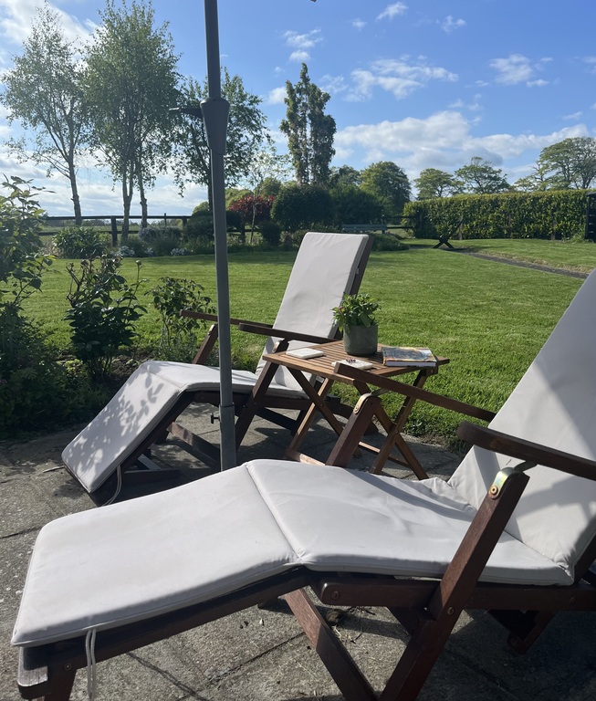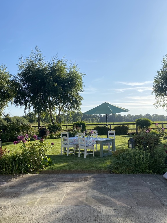 Outside we have a wood burning oven and a gas barbecue for outdoor cooking and dining, a Kettle Barbeque, a Planca barbeque, a firepit.We have spectacular summer sunsets across open fields. In our garage with four bicycles and garden equipment. Our home has gardens on all sides which include a herb garden and orchard. We have two cats are never allowed in house and live outdoors and three hens! We are surrounded by big fields that have beautiful horses.