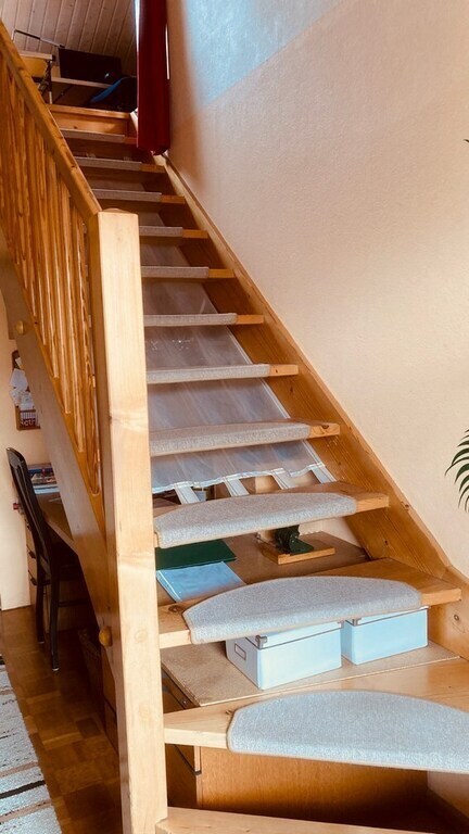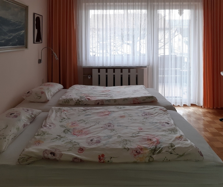 Spacious and comfortable apartment (maisonette, 150 m2) in a two family house, occupying the whole 1st floor plus the attic. 3 bedrooms (1 master-bedroom with king-sized-bed, two single bedrooms), 2 bathrooms. There is a big balcony (south side) and a lovely garden with a lot of flowers, a barbecue and garden furniture. The garden has a separate entrance and is used only by ourselves. The washing machine and tumble dryer are located in the basement.