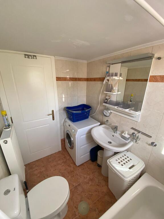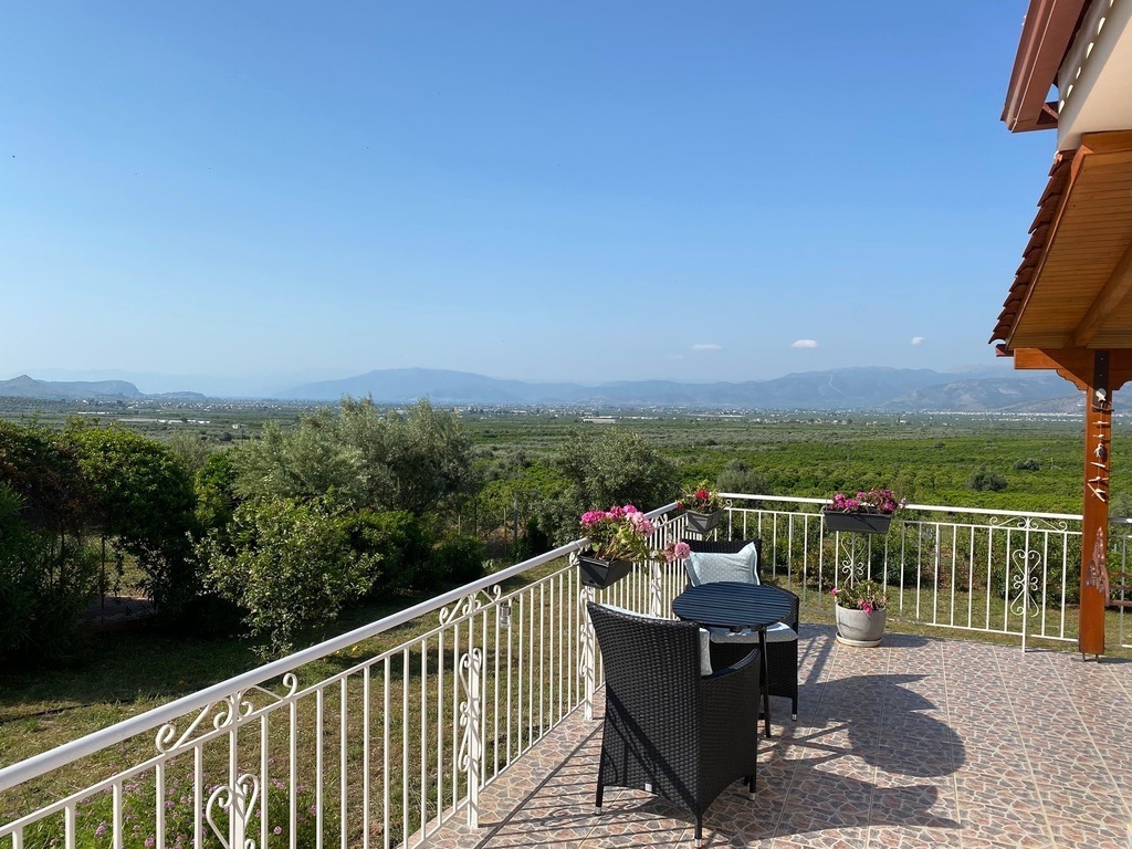 Outside there is a large terrace, (48 m2) partly with roofing, from where you have a beautiful view of the bay of Nafplio, the olive- and orange trees, the mountains and the castles of Nafplio and Argos.