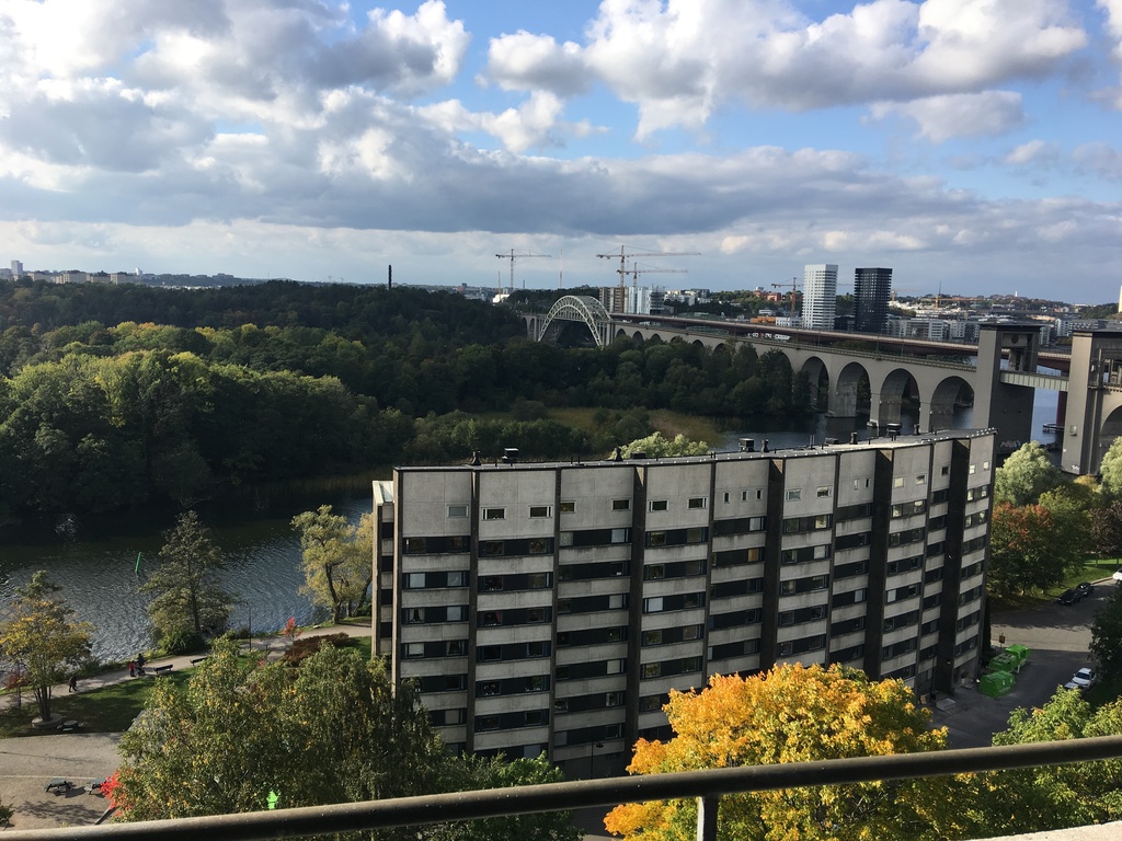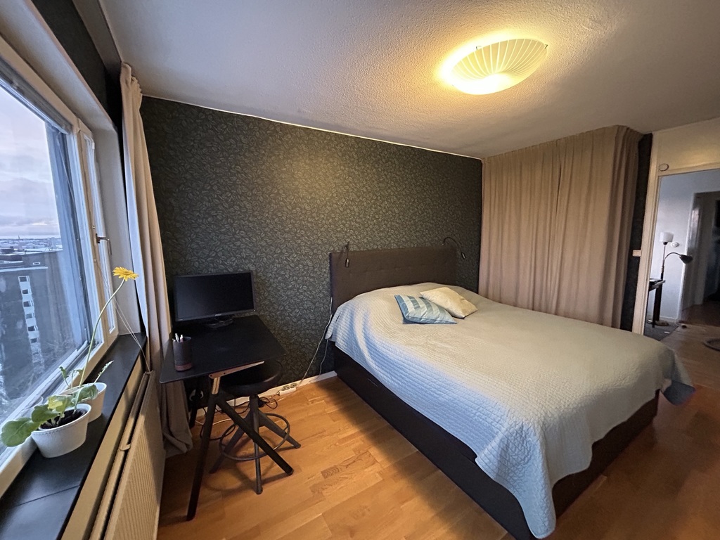 The living room and the main sleeping room are headed to the south and have a view over the lake Mälaren and the southern suburbs. The flat is situated in the 8:th floor (there´s a big elevator) and has wifi.