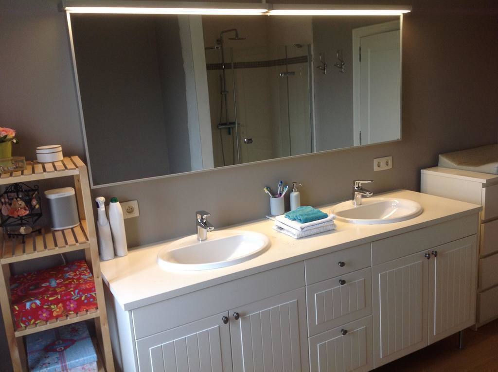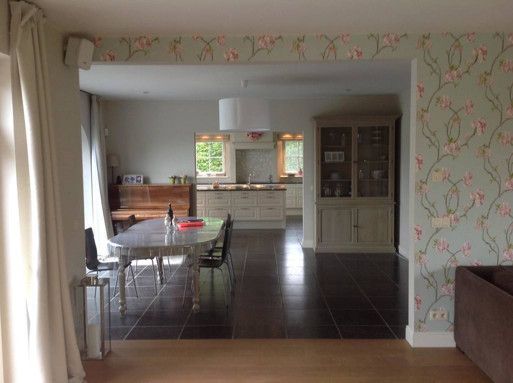 Our comfortable and recently build house is situated in the fruit orchards of Belgium, in Haspengouw. The kitchen is fully equipped, the living and dining room are very spacious with a large table, a king-size sofa and a wide flat screen tv. We have 4 bedrooms, each with double beds (baby stuff and cradle still available). The bathroom consists of a central bath, a shower and 2 sinks. There are 2 separate toilets, a study, a utility room, a cellar and an attic. A large terrace to the large secluded green garden, with lots of children’s play tools: trampoline, bikes, sand box, slide, swings, basketball board, …
