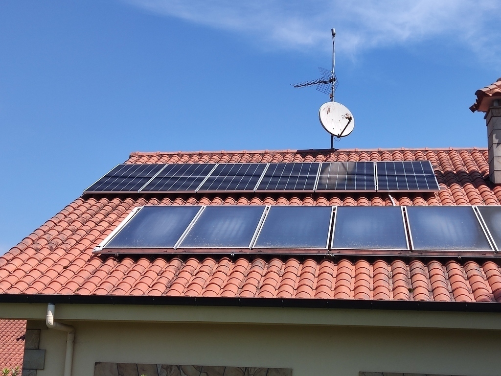 On the roof there are some solar pannels for the hot water and the electricity