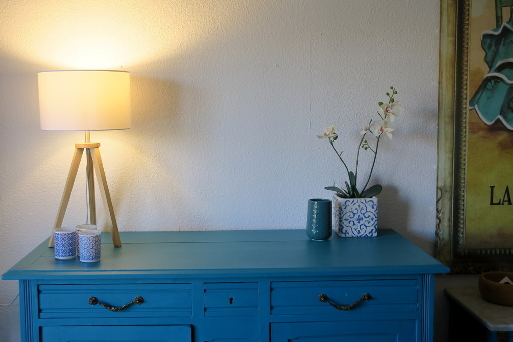 Our appartement is well-equipped(washing machine, TV, internet,cooking supplies,...). It consists out of: the kitchen(microwave, dishwasher, washing machine and other appliances), the living room has a saloon and on the other side a dining tabel for 4 persons, with view on the terras. The terras is equipped with a colourful dining table and a lounge chair..