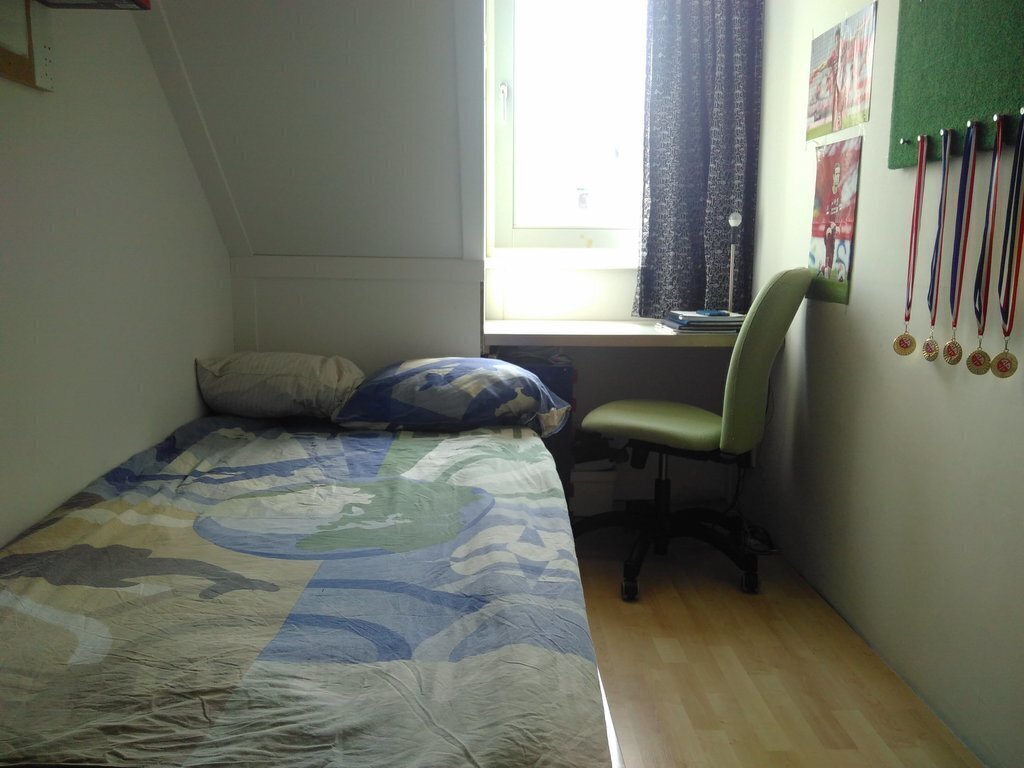 Our house is located in a neighbourhood that is characterized by a mix of tall flats and smaller houses. In front of our house you will find a large area with trees and parking lots. Very limited traffic on the road in front of our house (dead end street).
