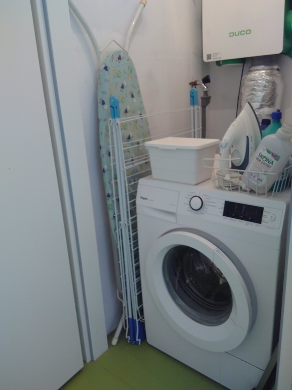 Kitchen and living area. Washing machine. Toilet. Bathroom with shower and washing basin. Acces to the balcony.