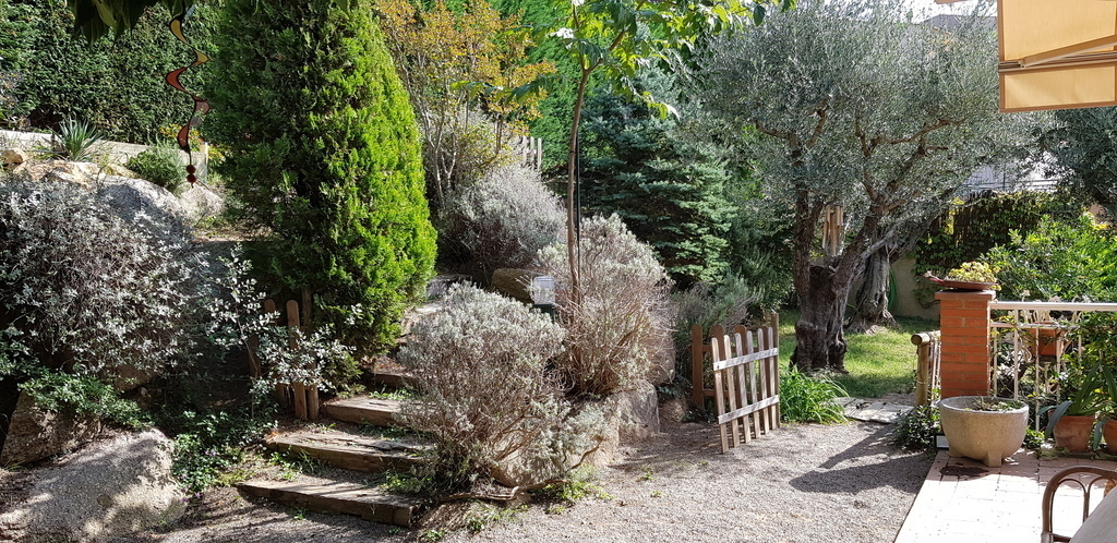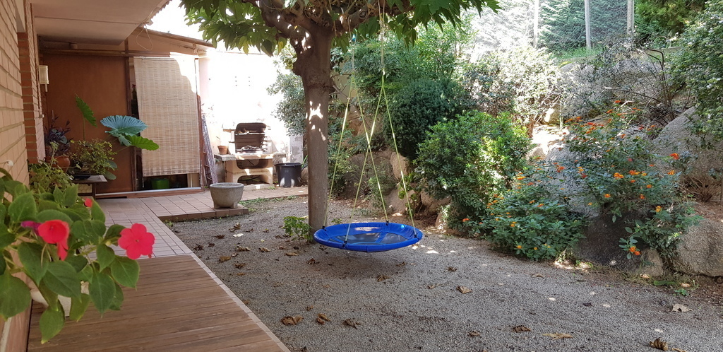 El jardin es muy amplio y consta de terraza y barbacoa para poder comer al aire libre.