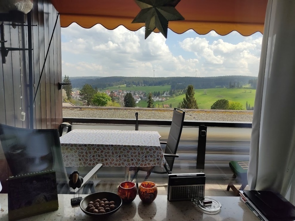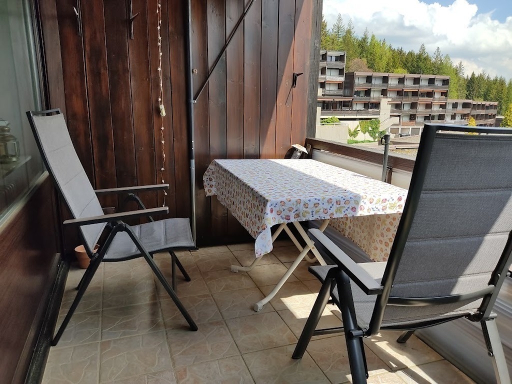 Vakantie-appartement in een groot appartementsgebouw gelegen aan de rand van het mooie en rustige dorp Schonach.(Zwarte Woud) Kleine maar zeer comfortabele, moderne en propere flat voor 2 personen. (wel aparte bedden in zeer kleine slaapkamer) Voorzieningen in het gebouw zeer goed : overdekte parking, overdekt zwembad, pingpongtafel, sauna, gemeenschappelijke wasmachine en droogkast... Het balkon geeft een prachtig zicht op de omgeving (voldoende plaats voor een tafel met 2 + relaxzetel) Op nog geen 2 km een zeer aangenaam en gratis natuurzwembad. Schonach is een goede uitvalsbasis om het Zwarte Woud te leren kennen en liefhebben ! Dorette en haar partner zorgden voor wandelmappen, een flesje wijn als onthaal,......wij voelden ons direct heel welkom en wisselden nadien nog kort onze ervaringen via whatsapp. De zoveelste zalige huisruil !