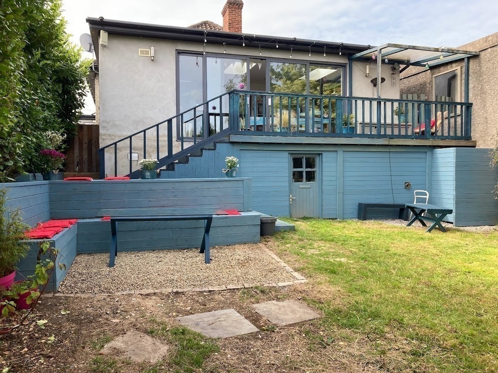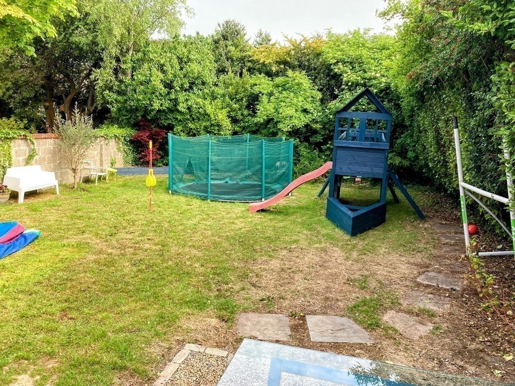 Very spacious family home with child-friendly garden of swings, playhouse, slide, trampoline and seating areas for adults to relax and enjoy while the children play.