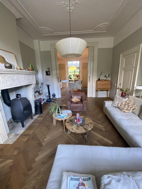 Two showers (1 bath) near the center of Wageningen (stduent city). We are 200 meters from a nature reserve and close to swimming water (1km). Large hight rooms, decorated ceilings and an extension with veranda. Beautiful city garden.