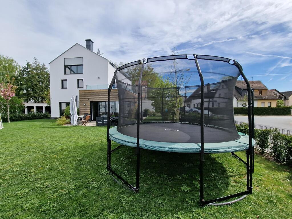 Our house with a big garden is located in the northernmost district of Frankfurt in a quiet area. The house is newly built and has plenty of space (220 sqm). There are six rooms on three floors available for guests. On the ground floor is the kitchen and living room, 1st floor 3 bedrooms and bathroom and on the 2nd floor two more sleeping rooms and a bathroom.
