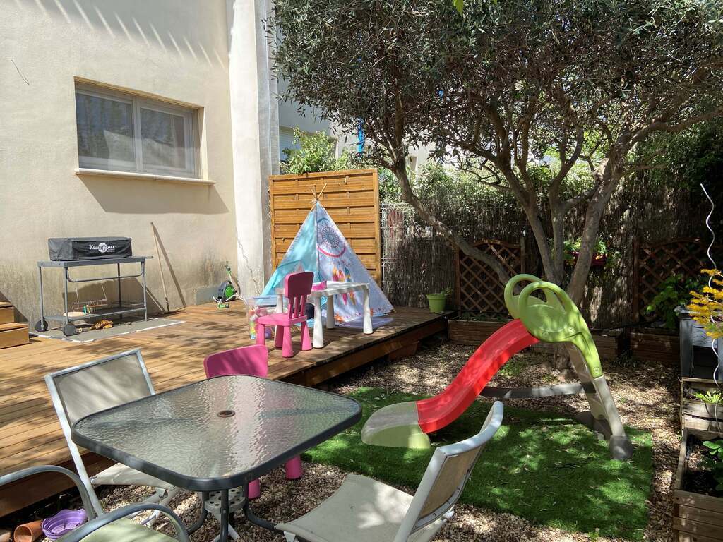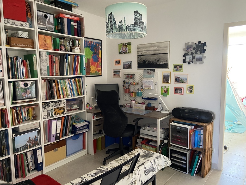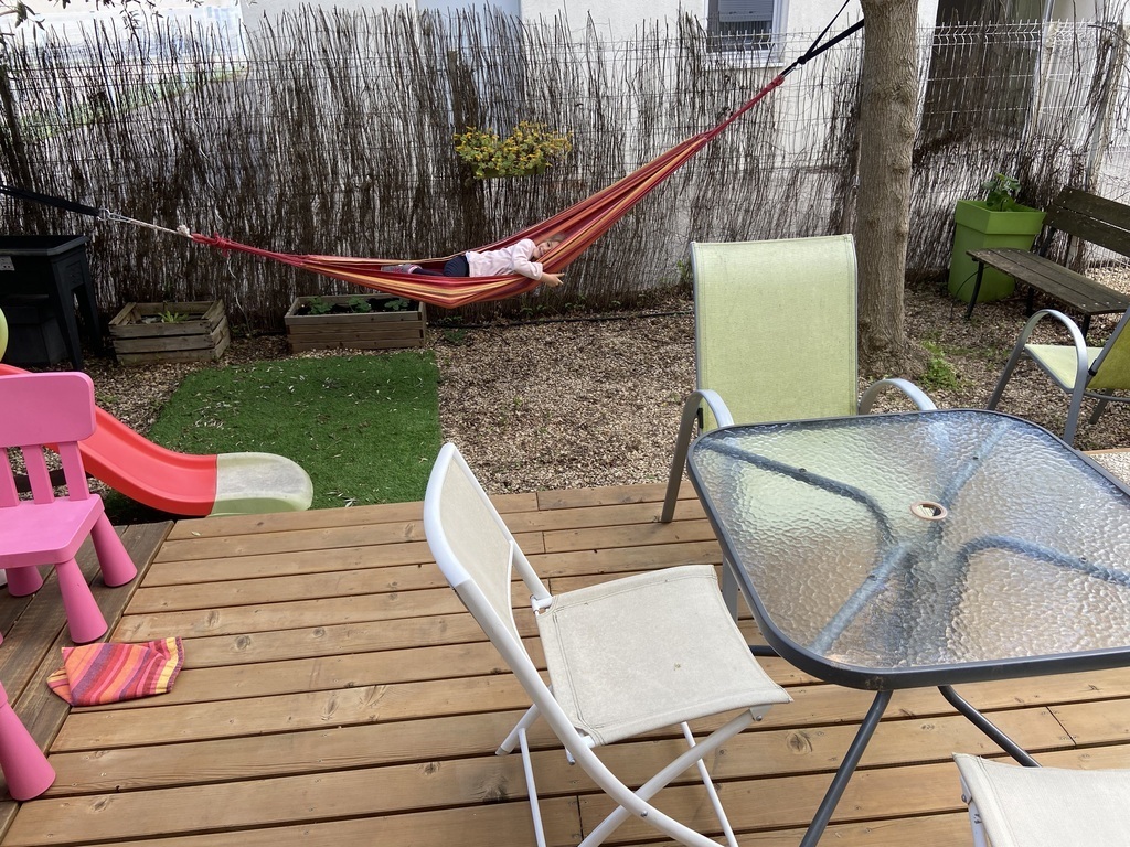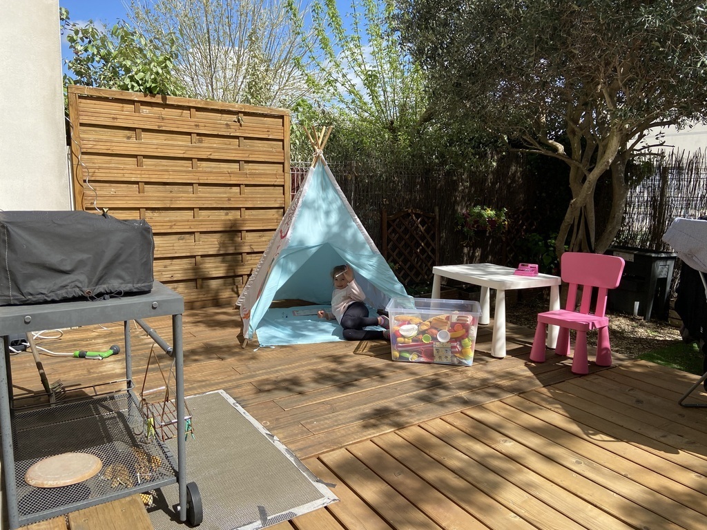 Our house has two small gardens, one at the front of the house and one at the back with a terrace for outdoor dining, equipped with an electric plancha. On the ground floor a kitchen open to a dining room and a living room, the sofa can be converted into a bed (160 x 200 cm). Upstairs: 3 bedrooms: 1 bedroom with a double bed (140x190cm), 2 children's bedrooms with single bed (90x190cm) an office space and a bathroom with shower and bathtub. 2 separate toilets, one on the ground floor and one upstairs.