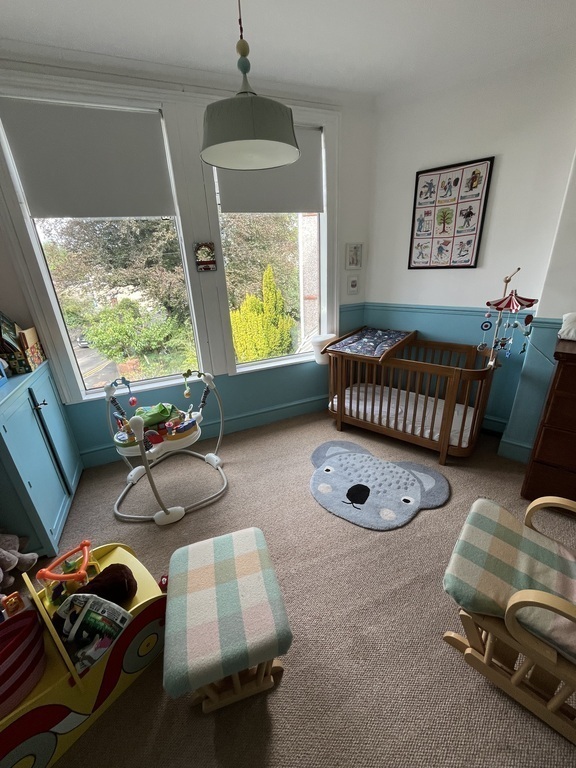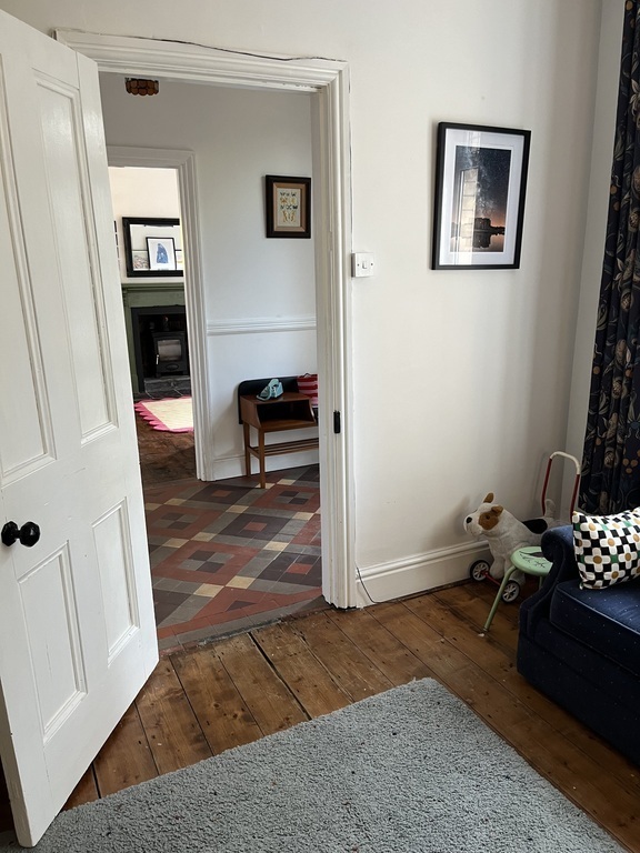 We have a living room with log burner, piano / sitting room, dining room, kitchen, utility / bathroom, master bedroom with ensuite, double guest, twin guest / mezzanine, nursery, attic - office, large attic room (storage / bedroom in future). We have a large garden - we enjoy sitting under the porch at the front of the house. Our back garden has a vegetable patch, greenhouse and has a stream at the back (not safe for paddling) which we love sitting and listening to.