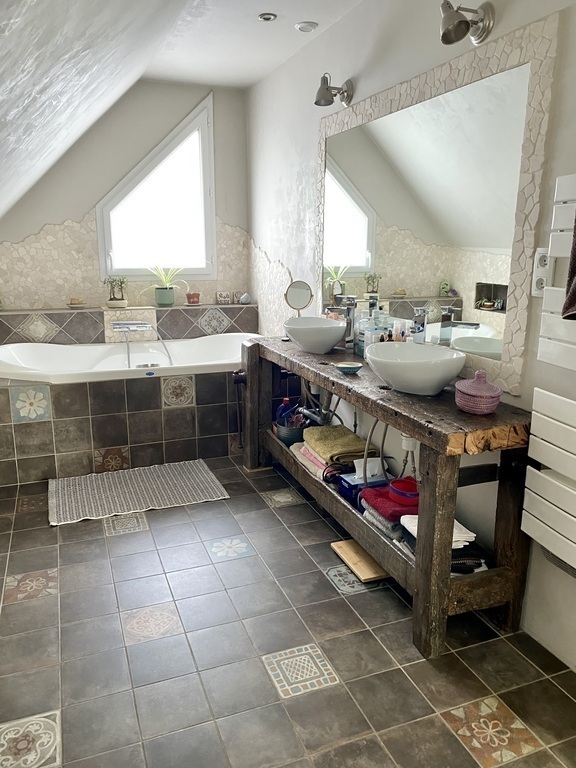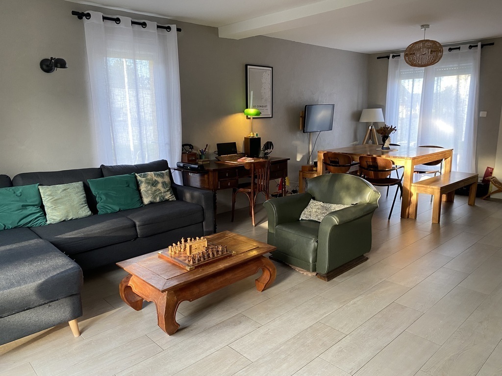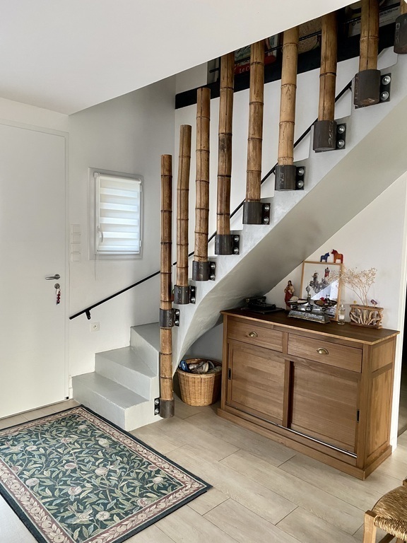 Maison chaleureuse de 120m², grande terrasse en bois sur jardin arboré de 200m².