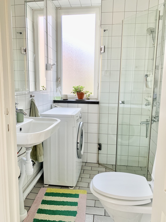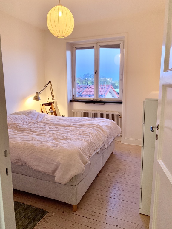 In one of Stockholms most trendy areas, but also on a really quiet street. Balcony with sun all day, close to parks, great bars and to the water where you can take a swim. Södermalm in Stockholm has a lot of bars, cafés, second hand stores etc. One bedroom with king size bed, but also possible to put up a comfortable mattress in the living room. I recently moved in, things on the walls and coffe table etc. will be in place for the summer! Very close to subway and busses.