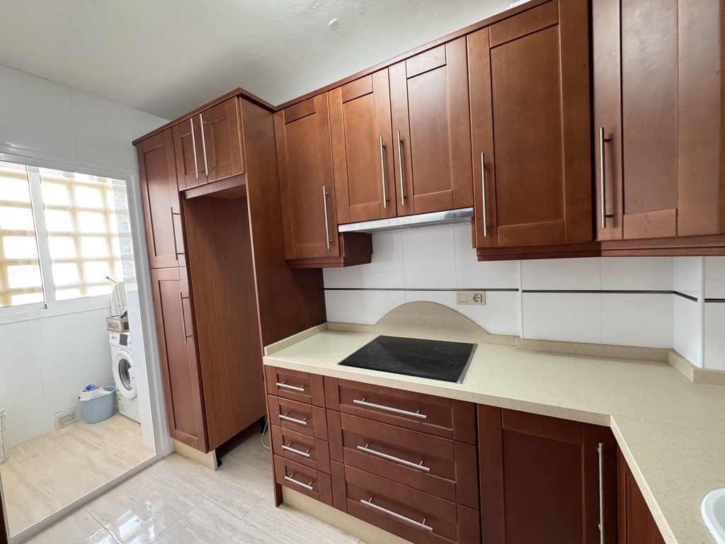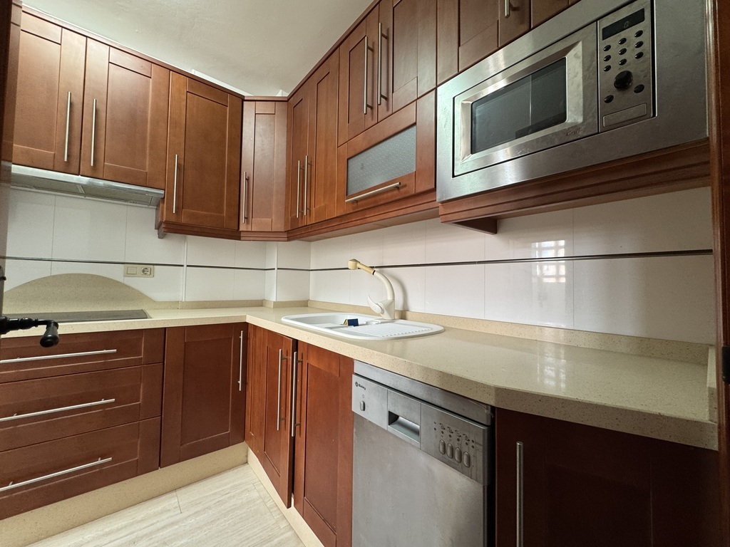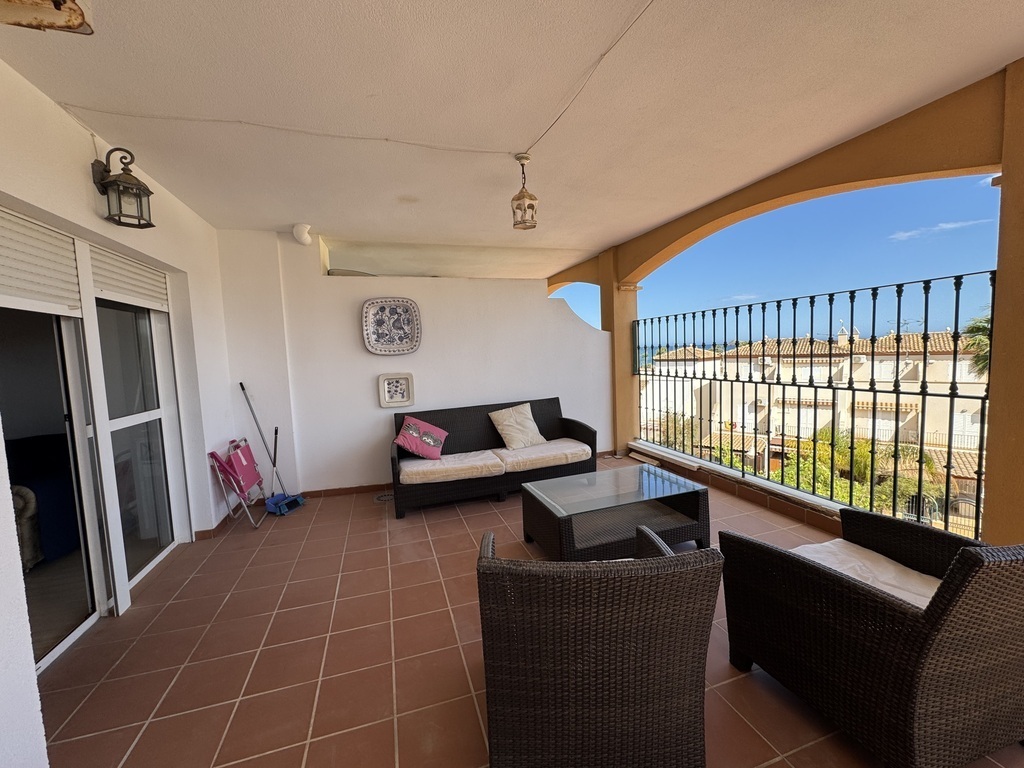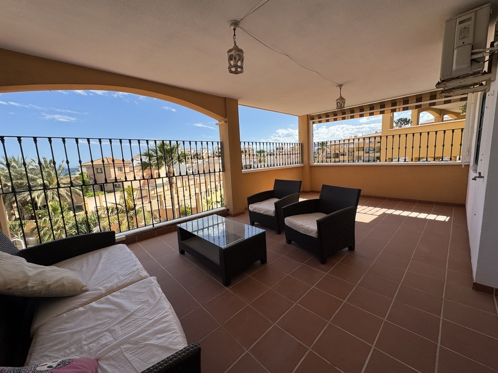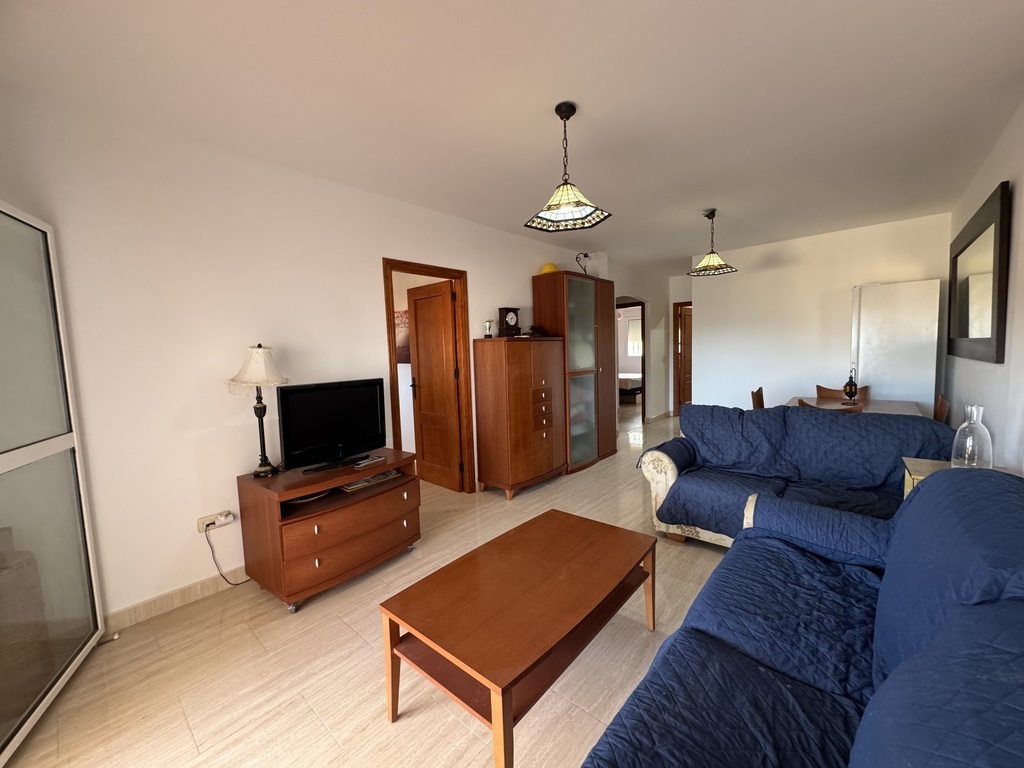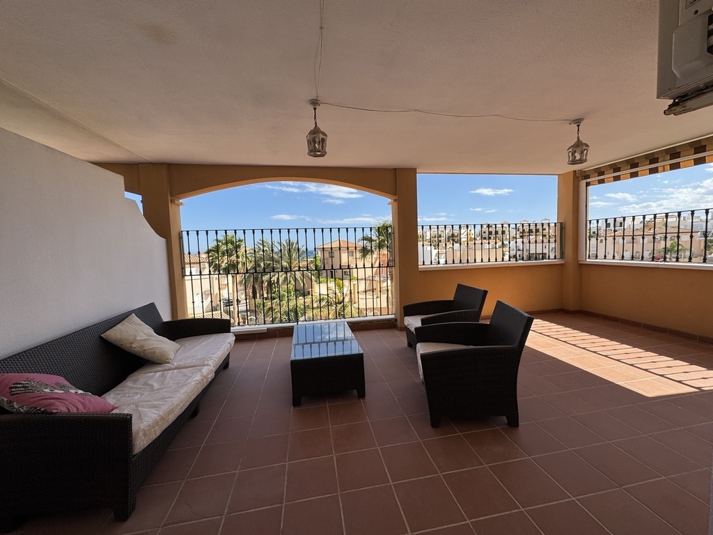 Vivienda situada en una urbanización cerrada, en el centro una piscina para adultos y una piscina para niños. El apartamento esta en la primera planta sin ascensor. Al abrir la puerta principal a mano derecha tenemos un dormitorio doble con dos camas, a mano izquierda un segundo dormitorio, a continuación un baño completo con ducha, y al frente tenemos una cocina equipada y con lavadero, volviendo al pasillo llegamos al salon comedor, con acceso a un tercer dormitorio grande y con salida a una gran terraza cubierta, donde se puede ver los jardines de la urbanización las piscinas y el mar. Dispone de dos plazas de garaje cubiertas. La zona es un pequeño paraíso, llamado San Juan de los Terreros y pertenece al pueblo de Pulpi, dispone de buenos restaurantes, bares, heladerías, playas….., se llega a la playa y a los bares en menos de tres minutos andando.
