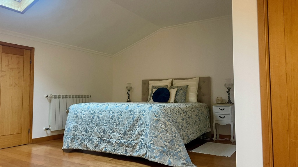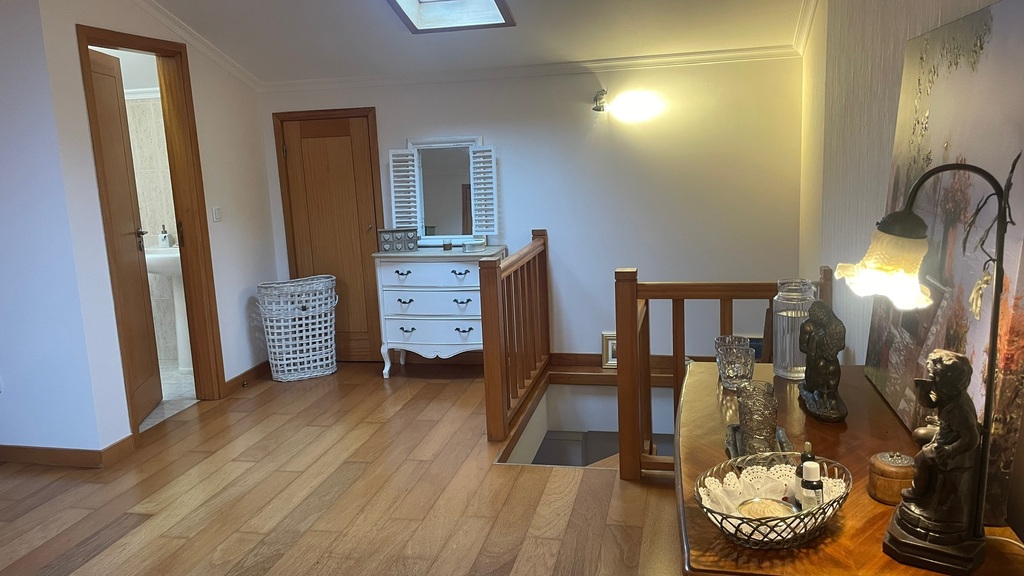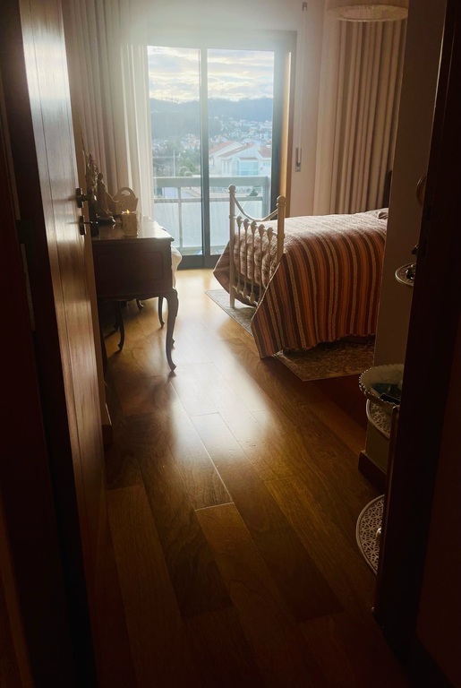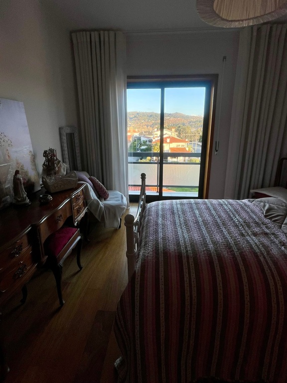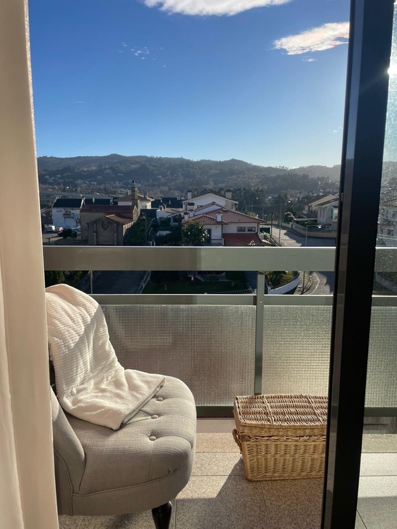 ENGLISH - Cozy, spacious apartment situated amidst nature yet close to the center of Fafe. 50 Minutes drive from Porto and the beach, and just 15 minutes drive from Guimarães and 30 minutes from Braga. Perfect for lovers of peace and quiet as well as the city, culture and history, and of course the Vinho Verde for which Northern Portugal is known. The apartment consists of two floors and features a spacious hall, living room, and a closed kitchen with a balcony. The apartment offers three bedrooms, one with a balcony, and has three bathrooms. At the rear, there is a beautiful view over hills and villages, with a stunning sunrise in the morning.